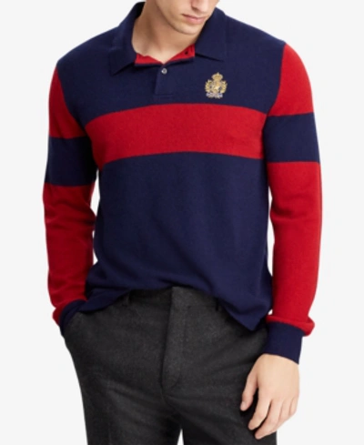 Polo Ralph Lauren Men S Cashmere Polo Sweater In Navy Red Modesens